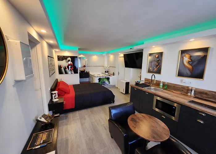 Love Room Romantique Avec Jacuzzi 2 Places地处佩皮尼昂,设有按摩浴缸 和热浴盆. 从这家公寓到马约卡王宫,开车约需5分钟.